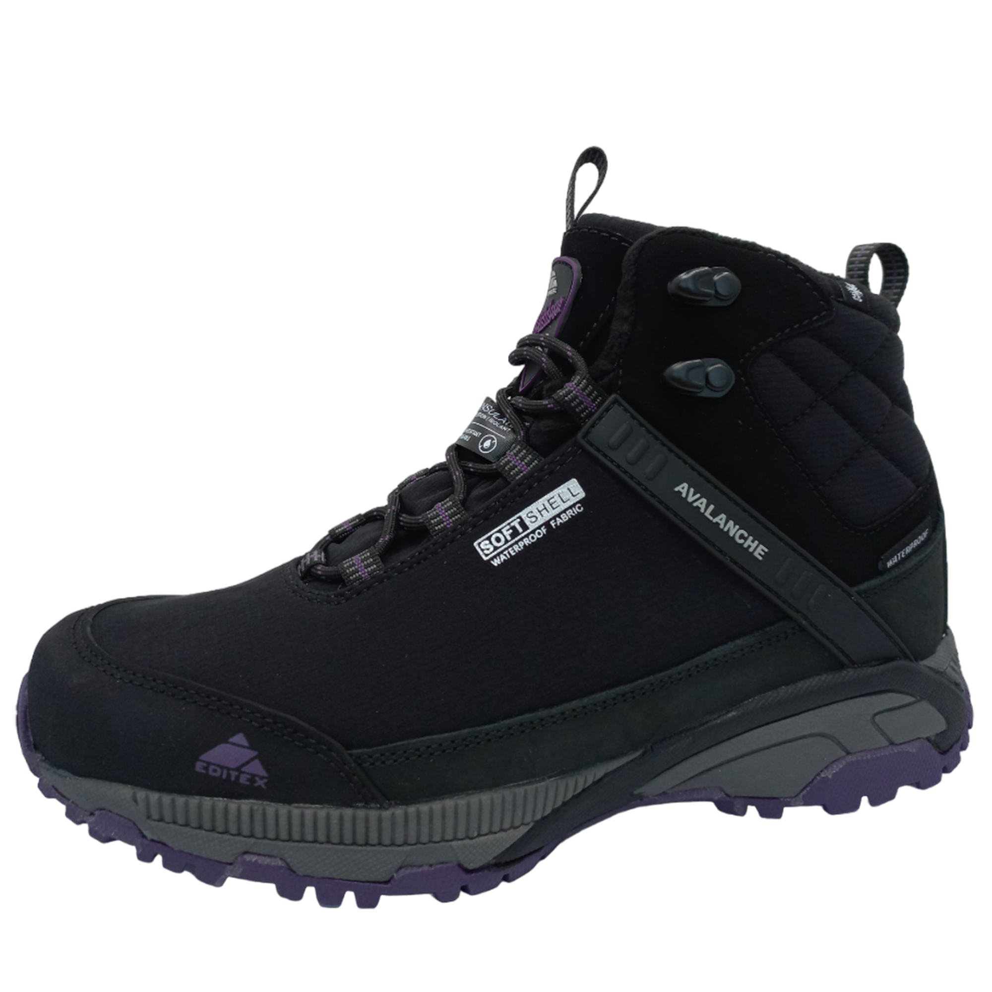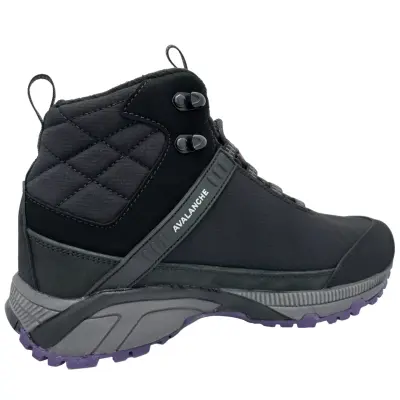 Удобные и стильные женские полуботинки прекрасно подходят для использования как для занятий спортом, так и в качестве повседневной обуви. Женские ботинки Avalanche изготовлены из высококачественных материалов, благодаря которым обеспечивается комфорт при носке и долговечность эксплуатации обуви. Верх ботинок выполнен из натурального нубука и инновационного материала SoftShell, который сочетает высокую эластичность и оптимальную прочность, надежно защищая от непогоды. Для большей защиты от снега и влаги все детали обуви обработаны стойким водоотталкивающим составом. Изнутри ботинки выполнены с использованием мембранной ткани, которая обеспечивает водонепроницаемость, сохраняя воздухопроницаемость. Утеплитель Thinsulate отлично удерживает тепло, защищая от холода даже при температуре до – 30 градусов, что делает данные ботинки отличным решением для долгих прогулок зимой. Эргономичная форма колодки обеспечивает плотную и комфортную посадку на ноге. Съемная мягкая стелька амортизирует шаг, гарантируя комфорт и удобство во время носки. Стелька пропитана специализированным раствором, предотвращающим развитие бактерий и появление неприятных запахов. Надежная резиновая подошва обеспечивает оптимальное сцепление с поверхностью, исключая возможность скольжения, легко поддается чистке. Ботинки выполнены в черно-фиолетовой цветовой гамме.Характеристики: