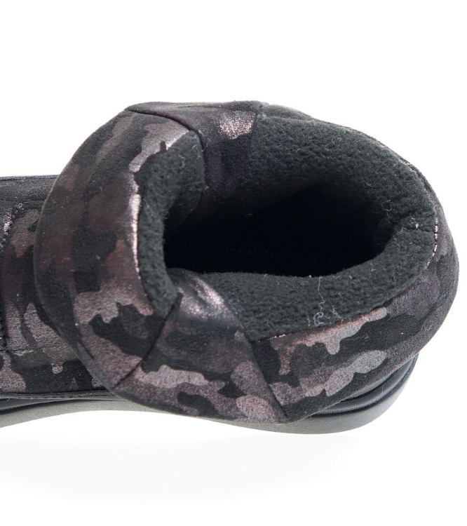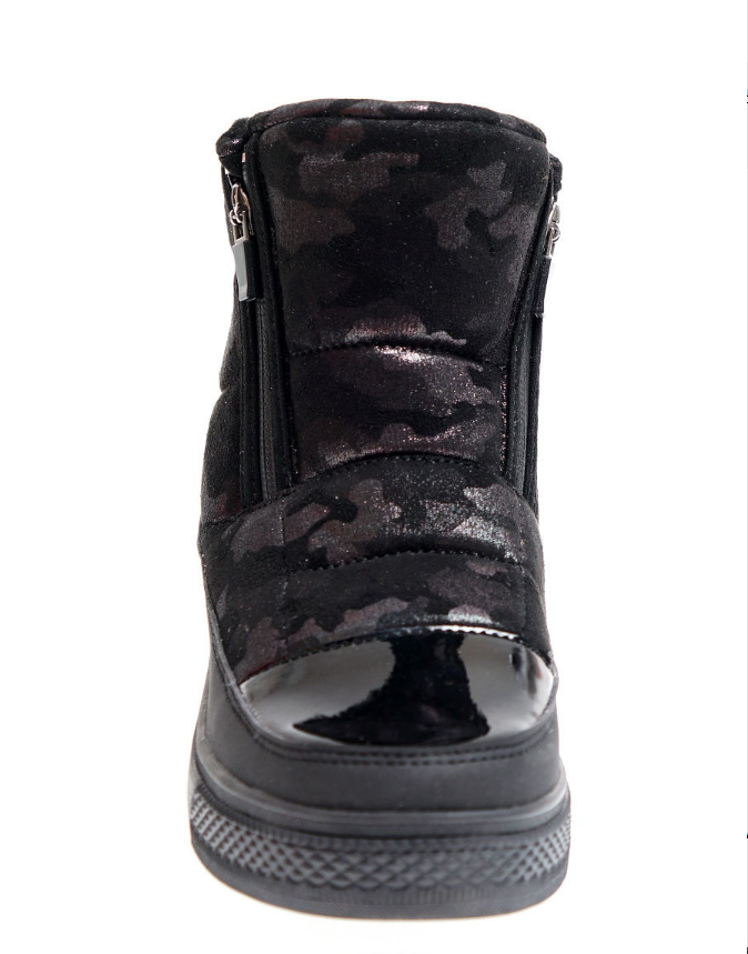 Полусапожки Strobbs обязательно понравятся любительницам стильной и одновременно удобной обуви. Удобная форма идеально подходит для ежедневного ношения в городе. Фирменный дизайн выполнен в черном цвете и дополнен камуфляжным принтом. Верх выполнен из текстильного материала, который хорошо сохраняет тепло и не даст ногам промокнуть, даже находясь в снегу. Универсальная модель подойдет как для активных пеших прогулок за городом, так и для ежедневного ношения в городе. Носок дополнен лакированной кожаной вставкой, которая держит форму и защищает носок. Плотная пятка предотвратит стаптывание ботинка и будет держать ногу в правильном положении. Шерстяной утеплитель хорошо сохраняет тепло и поддерживает комфортную температуру. Сапожки застегиваются на молнию. Утепленная стелька впитывает лишнюю влагу и амортизирует удары во время длительной ходьбы. Прочная двойная подошва из пластичной резины с цепким протектором обеспечат устойчивость на любом покрытии. Плоская форма обеспечивает легкость и комфорт в течение всего времени ношения.Особенности и преимущества: