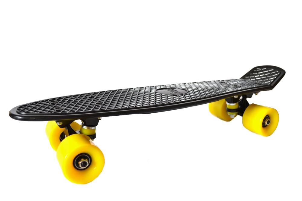 Универсальный мини-круизер PNB-01 в необычной черной расцветке – это идеальное средство передвижения на летний сезон. Прочная конструкция с алюминиевой подвеской выдерживает максимальный вес до 100 кг. Благодаря чему, на скейтборде могут кататься, как дети, так и взрослые. Катание на доске помогает развивать физические способности, чувство равновесия и выносливость. Отличная маневренность и легкость управления делают пенни-борд прекрасным средством передвижения на каждый день при любых погодных условиях. Прочная дека из полипропилена устойчива к повреждениям и царапинам, сохраняя свой превосходный внешний вид на многие годы. Рельефный рисунок на деке создает дополнительное сцепление с подошвой обуви для безопасного катания. Оптимальные размеры деки позволяют с комфортом размещать 2 ноги и чувствовать себя уверенно во время катания. Мягкие полиуретановые колеса с жесткостью 78А смягчают все неровности дороги и отлично амортизируют удары. Скоростные подшипники класса ABEC 7 обеспечивают плавный и быстрый разгон. Стильный внешний вид, прочность и удобство делают мини-круизер отличной альтернативой велосипеду или городскому самокату.Особенности и преимущества: