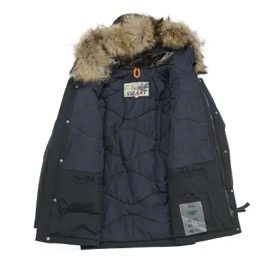 Качественная мужская куртка для зимы от бренда Vizani сделает прогулку в холод уютной за счёт современного утеплителя и мембранной курточной ткани, что в совокупности позволяет сохранить комфортный микроклимат под одеждой. Произведённая по технологии ткань Uniqtex обеспечивает высокий уровень защиты от ветра за счёт микроскопических пор, которые не дают ветру проникнуть сквозь ткань, разбивая его на микропотоки, тем самым сохраняя комфортные условия внутри и давая коже возможность дышать, а специальная влагоотталкивающая обработка не даст влаге снаружи пропитаться. Многослойный тонкий утеплитель Valtherm обеспечивает достойный уровень термоизоляции за счёт полимерных ультратонких волокон, создающие микроскопические поры и эффективно сохраняя тепло тела без образования парникового эффекта. Гипоаллергенная подкладочная ткань на основе полиэстера не вызывает раздражения кожи и даст чувство уюта даже в самую суровую зимнюю погоду. Комфортный капюшон с отстёгивающейся опушкой из натурального меха в сочетании с отделанным искусственным мехом с внутренней стороны воротником обеспечивает дополнительный уровень защиты от холода. Двойная молния с ветрозащитной планкой и плотными манжетами на основе трикотажа предотвращает попадание холодного ветра под куртку. Куртка обладает высокой степенью функциональности за счёт большого количества как внутренних, так и внешних карманов, некоторые из которых отделаны мягким материалом для сохранения тепла. Изделие также оборудовано крупным карманом для хранения планшета или документов. Длительное ношение куртки обеспечивается за счёт использования современных материалов стойких к изгибу и износу, сохраняя свои свойства даже после множественной машинной стирки. Куртка сочетается с любыми элементами одежды тёмных тонов, позволяя стильно выглядеть во время пешей прогулки.Характеристики:
