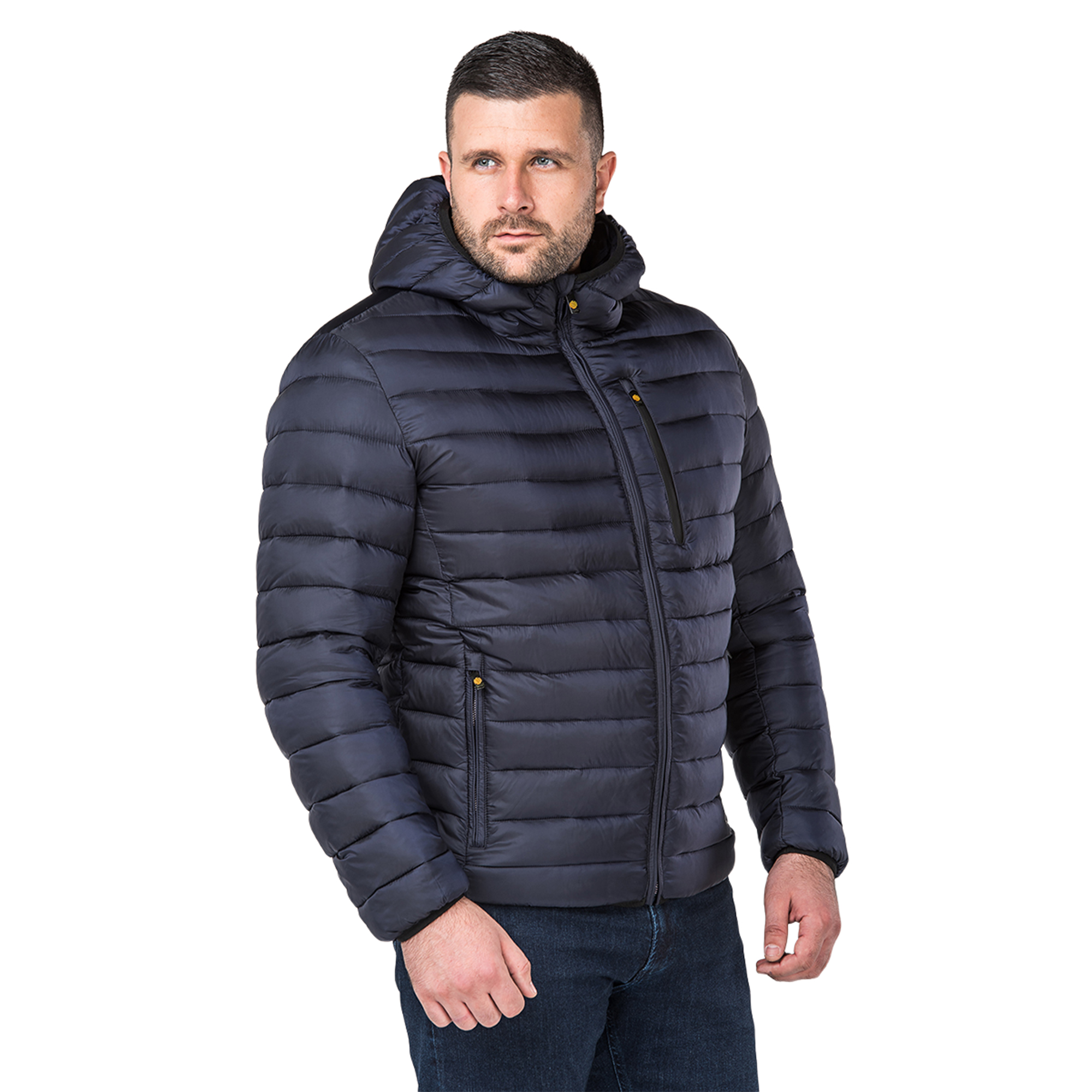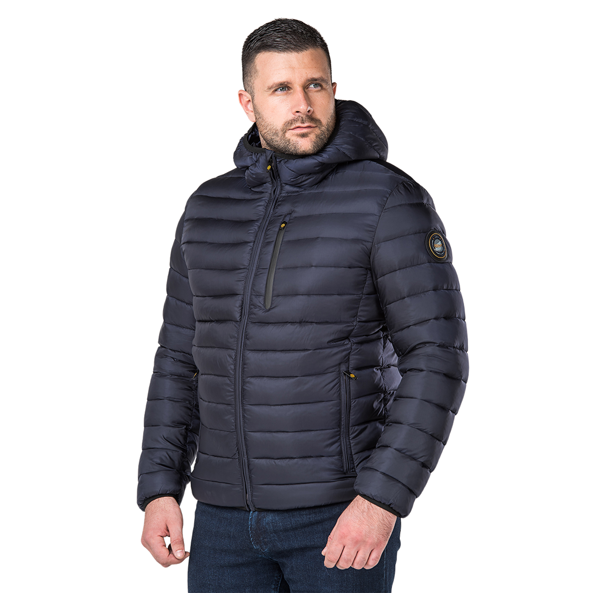 Демисезонная мужская куртка бренда Vizani станет отличным выбором для города благодаря удобному укороченному дизайну и современным материалам, надёжно удерживающие тепло и сохраняя комфортный микроклимат. Современная курточная ткань обладает высокими ветрозащитными свойствами, а благодаря специальной влагоотводящей пропитке не даст влаге проникнуть под ткань. В качестве утеплителя куртки используется экологически чистый био-пух, который за счёт полиэфирных тонких ворсинок, образующих множество пор, эффективно удерживает тепло тела сохраняя комфорт. Нежная нейлоновая подкладка обеспечивает дополнительный уют и не вызывает раздражения кожи. Объёмный капюшон плотно прилегает к голове и даёт дополнительную защиту от ветра и снега благодаря окантовке из резины. Манжеты и низ изделия плотно прилегают к телу и не дадут проникнуть холодному воздуху под одежду. Куртка оборудована боковыми карманами на молнии для хранения мелких вещей, а также нагрудным и внутренними карманами, отделанные мягкой тканью. Износостойкие и гибкие материалы позволяют не сковывать движений и выдерживать длительное ношение, а также переносить множество циклов машинной стирки без выцветания и с сохранением функциональных особенностей изделия. Утилитарный городской дизайн в сочетании с синим цветовым исполнением позволяет сочетаться с другими элементами одежды и стильно выглядеть на улицах города.Характеристики: