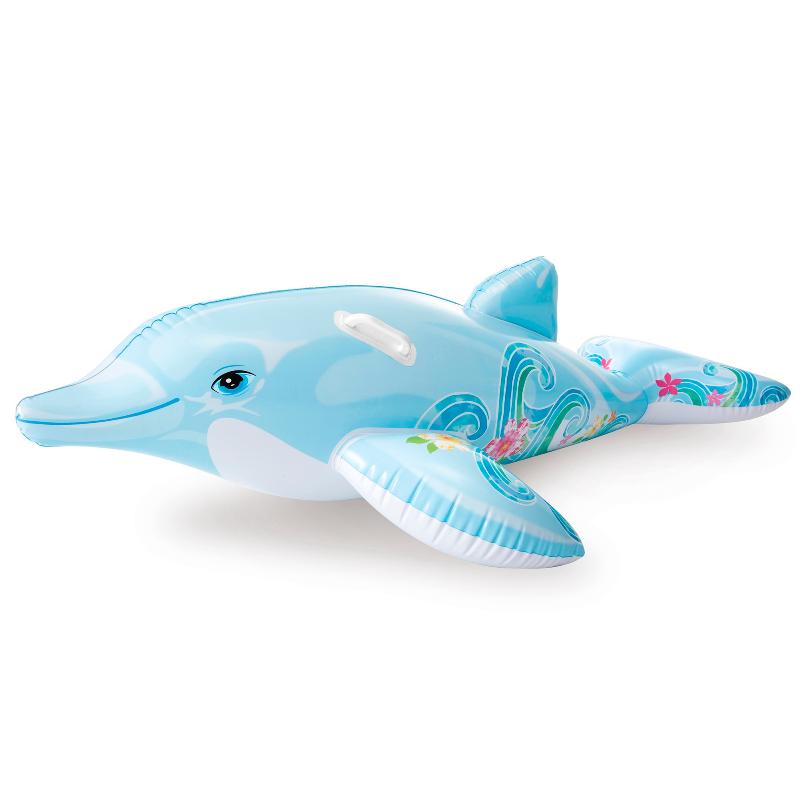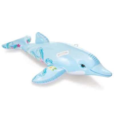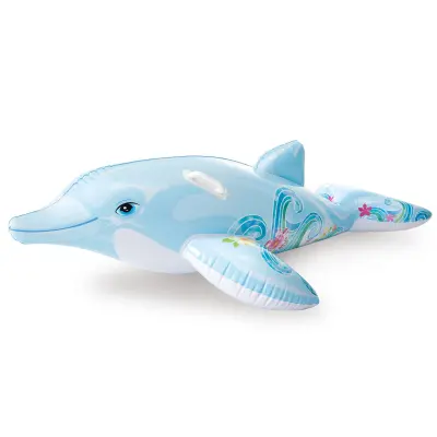 Оригинальная и не обычная надувная игрушка Intex выполненная в виде дельфина – это незаменимый водный аксессуар, который поможет разнообразить летний отдых. Дельфин обязательно привлечет внимание ребенка и поможет победить страх воды. Малыш сможет кататься верхом на игрушке во время плавания или играть на берегу. Благодаря удобным боковым ручкам ребенок сможет крепко держаться во время плавания. Виниловый материал обладает достаточной плотностью, защищая от случайных проколов во время активных игр. Качественно нанесенная печать, отличается высокой стойкостью от истирания и не выгорает на солнце. Материал не вызывает аллергии и полностью безопасен для детей. Такой необычный внешний вид подарит ребенку больше количество положительных эмоций во время летнего отдыха. В комплекте имеется ремонтный набор в случае повреждений.Особенности и преимущества:
