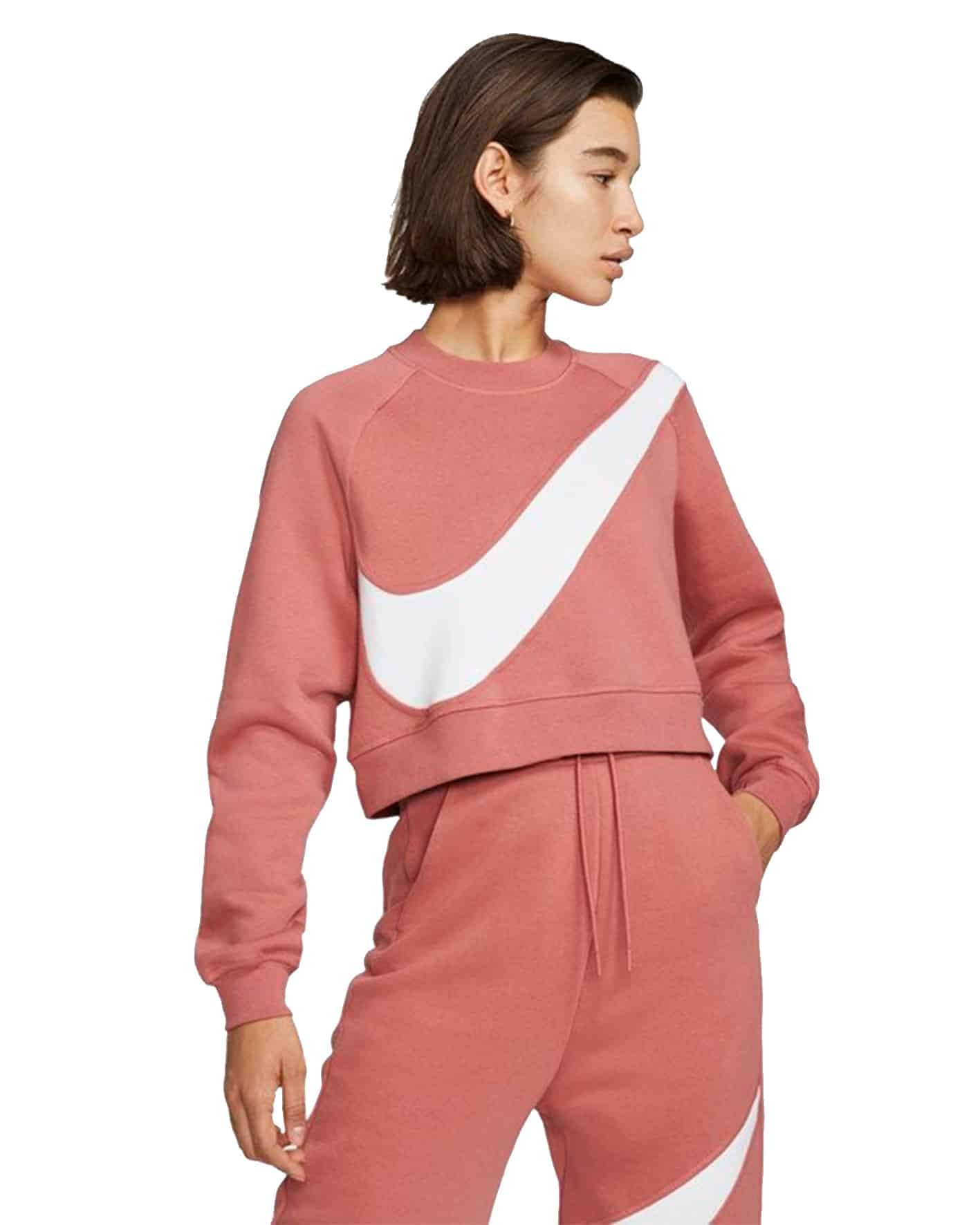 Спортивная толстовка Nike SportWear Swoosh станет любимым вариантом верхней одежды на осенне-весенний период. Такая кофта порадует своим удобством и высококачественными материалами. Мягкий, практичный флисовый материал приятно прилегает к телу и сохраняет ощущение легкости во время ходьбы. Утепленный начес с изнаночной стороны поддерживает оптимальный температурный режим, согревая в прохладную погоду. Вы сможете без дискомфорта тренироваться, как на открытых уличных площадках, так и в специальных тренировочных залах. Розовый цвет свитшота будет приятно смотреться на теле и добавит образу нежности. Влагоотводящие свойства толстовки не дадут Вам намокнуть во время активного тренинга. Это дает возможность полностью сконцентрироваться на процессе тренировки и защищает от переохлаждения. Износостойкий материал не растягивается со временем, не теряет насыщенность цвета и остается в превосходном состоянии даже после многочисленных стирок. Укороченная длина подчеркивает достоинства фигуры и не сковывает движений. Манжеты и кромка обработаны эластичной тканью, они не натирают кожу и не доставляют дискомфорта. Современный джемпер обладает всеми необходимыми характеристиками для комфортного ношения и будет радовать Вас в течение многих сезонов.Особенности и преимущества: