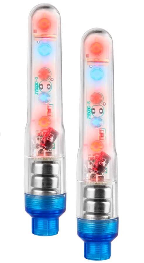 Декоративные разноцветные фонари на ниппель с автоматическим включением, обезопасят Вас в условиях недостаточной видимости. При вращении колеса, фонарь образует мерцающее изображение, по которому легко отследить траекторию Вашего движения.